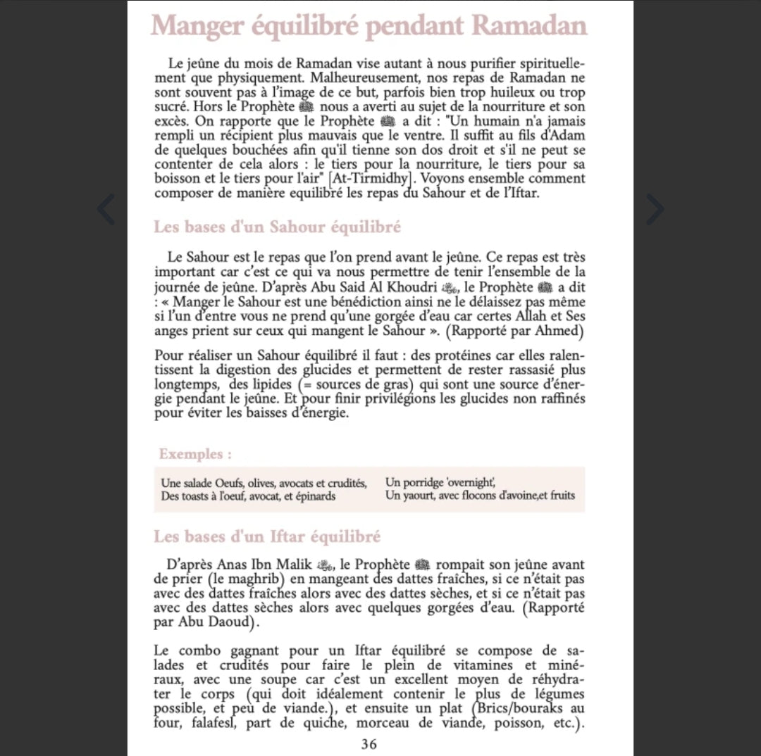 - Routine Structurée : Un agencement précis de votre journée, depuis le suhoor (repas avant le jeûne) jusqu'au iftar (rupture du jeûne), en passant par les prières, les lectures du Coran et les moments de méditation. Cette routine équilibrée garantit que chaque aspect de votre journée est pris en compte pour une expérience spirituelle et physique harmonieuse.